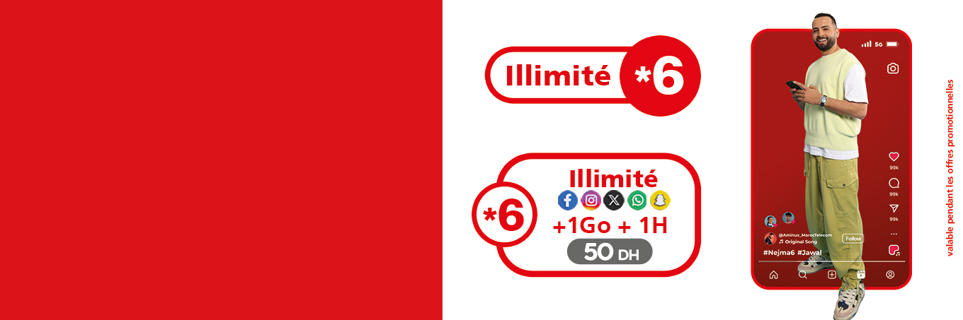 Nouveau ! Profitez des réseaux sociaux en illimité à 50DH, pour scroller, poster et partager sans compter.